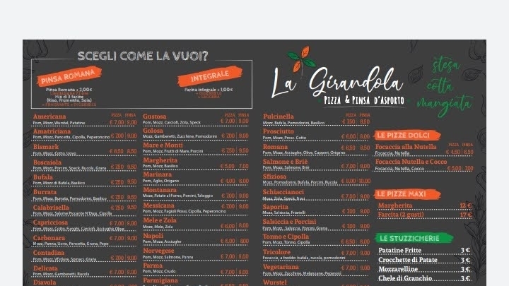 Welcome to Pizzeria La Girandola pizza e pinsa romana, a charming gem nestled in the heart of Gerenzano, Italy. Located at Via XX Settembre, 37, this pizza restaurant is not just a place to eat; it's a celebration of authentic Italian culinary tradition, focusing on the art of pizza and pinsa romana. With a phone number of +39 378 085 8797, they stand ready to serve both on-site diners and those wanting to enjoy their exquisite offerings at home.